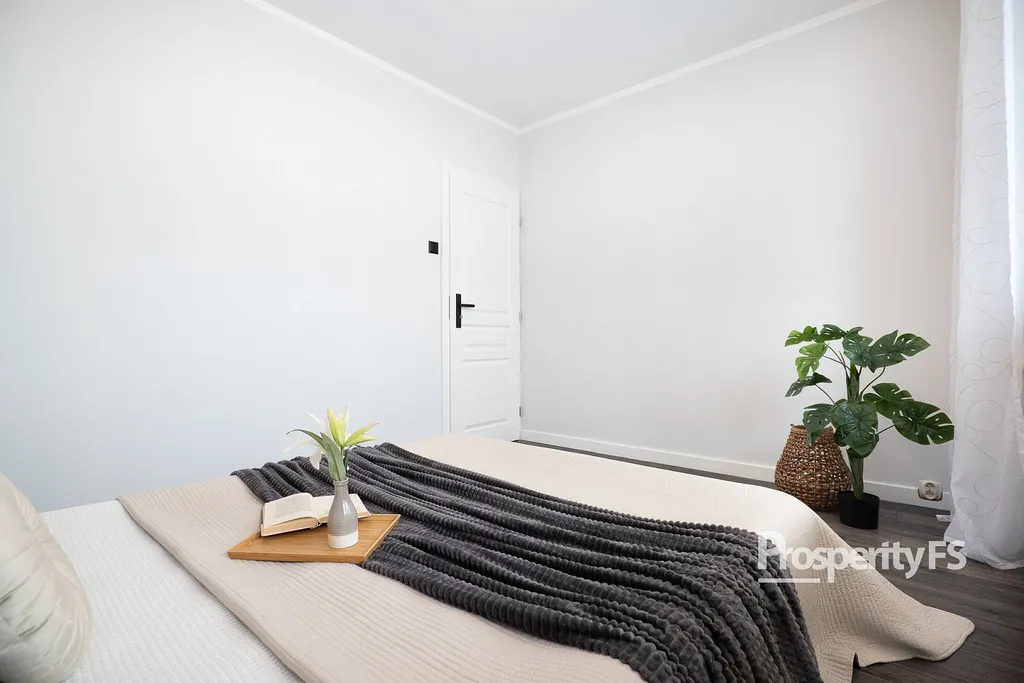 Součástí vybavení je kuchyňská linka s plynovým sporákem. Koupelna je vybavena WC, sprchovým koutem, vanou a umyvadlem. V bytě jsou plovoucí podlahy, vytápění je řešeno ústředním dálkovým vytápěním prostřednictvím radiátorů. Byt je napojen na dálkový vodovod, elektřina 230 V. Vybavení v ložnicích je pouze staging.