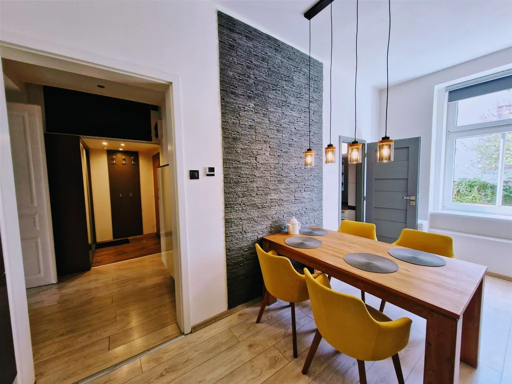 Exkluzivně nabízíme k prodeji byt dispozicí 2+1 o podlahové ploše 62 m2, situovaný v 1.patře cihlového domu. Byt prošel cca před 5 lety kompletní náročnou rekonstrukcí má protihluková okna, kompletní nové rozvody, omítky, podlahy, vybavení koupelny i kuchyně apod. Je nabízen s vybavením na fotografiích tedy i s vestavěnými skříněmi a elektrospotřebiči, dálkovým ovládáním žaluzií, osvětlením atd., jak je vidět na fotografiích. Byl užíván přímo majiteli opotřebení bytu i vybavení je minimální . Okna neprůchozích pokojů jsou orientována do ulice a směrem k velkému parku, kuchyně a koupelna pak do vnitrobloku. Za domem se nachází malá společná zahrádka. Parkovat lze v ulici díky modré zóně pro rezidenty dostatek parkovacích míst. K bytu patří sklepní kóje v 1.PP domu. Dům je velmi pečlivě udržovaný a spravovaný. Energetický průkaz ve zpracování tepelné ztráty jsou díky masivním zdem a kvalitním oknům minimální. Náklady na bydlení pro 2 osoby: fond oprav činí 1352 Kč, vodné a stočné cca 900 Kč, plyn 300 Kč a elektřina cca 5000 Kč za měsíc (celkem cca 7 500 Kč/měsíc včetně energií). Výhodná poloha bytu ob ulici od kampusu univerzity, v dochozí vzdálenosti od centra města a jeho stav a vybavení znamená velmi dobrou perspektivu pro pronájmy i pro vlastní bydlení Bližší informace ráda podám.