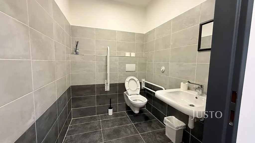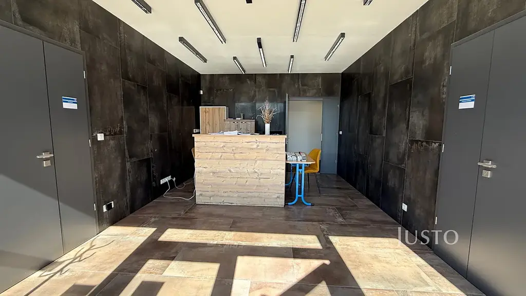 Kanceláře jsou umístěny v 1. nadzemním podlaží a nabízejí flexibilní uspořádání pro zázemí menší i středně velké firmy. Prostory jsou velmi dobře dispozičně řešeny, s dostatkem denního světla a nadstandardními plastohliníkovými okny. Moderní recepce a jednací místnost s designovým nábytkem podtrhují reprezentativní charakter celého objektu. Podlahy i stěny jsou z kvalitních materiálů, které vytvářejí příjemné a profesionální pracovní prostředí. Objekt je bezbariérový, což zajišťuje pohodlný přístup pro všechny zaměstnance i návštěvy.