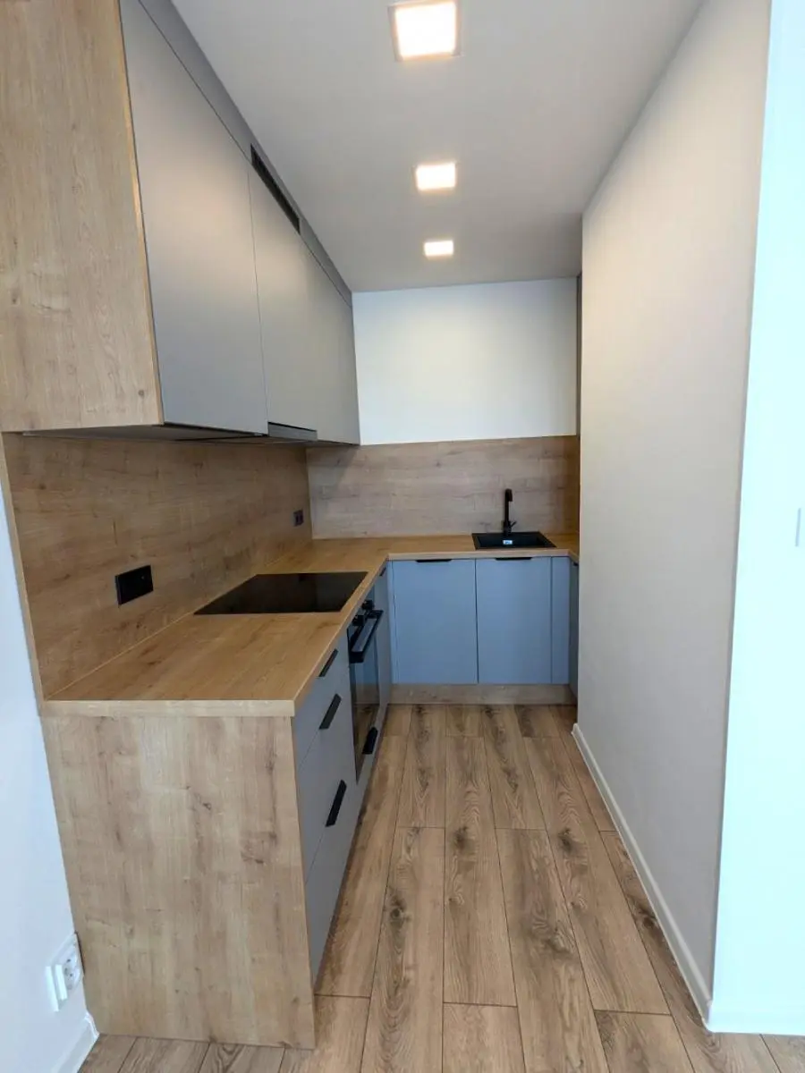 V kuchyni je kuchyňská linka s vestavnými kamny a indukční deskou, sporák s digestoří a myčka. V koupelně je moderní sprchový kout, umyvadlová skříňka se zrcadlem, WC a přípojka na pračku. V celém bytě jsou nové podlahy a interiérové dveře s obložkami.