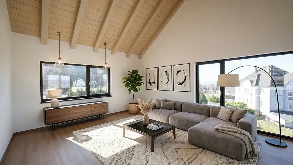 Nabízíme k prodeji exkluzivní dřevostavbu umístěnou na střeše bytového domu – jedinečné spojení komfortu bytu a soukromí rodinného domu s bezkonkurenčními výhledy.