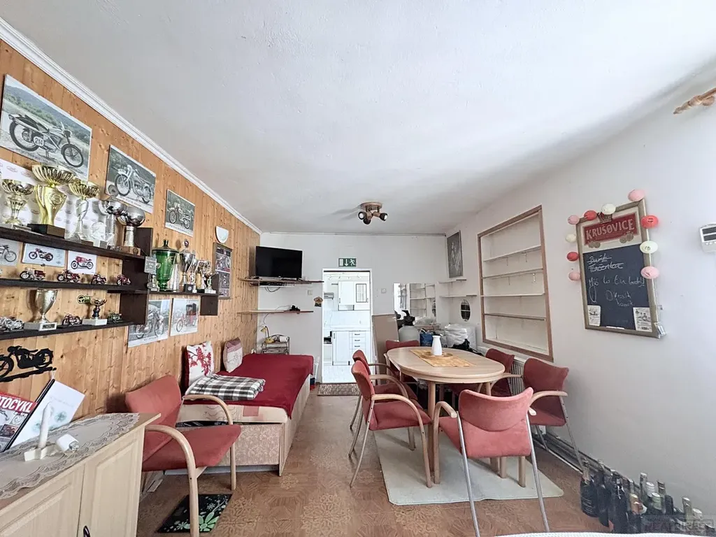 Samostatná bytová jednotka o dispozici 1+1, složená z pokoje a kuchyně (29 m²) s vlastním vstupem, vhodná pro vícegenerační bydlení, hosty nebo pronájem. Jednotka je vytápěna ústředním topením a doplněna krbem na dřevo, kuchyně je napojena na vodu, elektřinu i plyn.