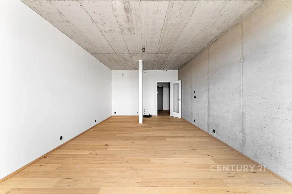 Byt je jednopodlažní, nachází se zde koupelna se sprchovým koutem a toaletou a hlavní obytný prostor s kuchyňskou a obývací částí. Ložnicová zóna je částečně oddělena příčkou, která zajišťuje soukromí. Součástí bytu je také balkon s perfektním výhledem na město.