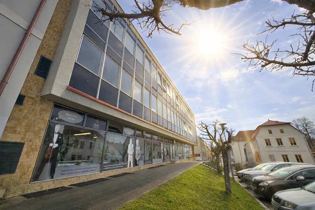 Prostory se nacházejí ve velmi známé budově oděvního družstva Vývoj, jehož tradice sahá až do roku 1931.