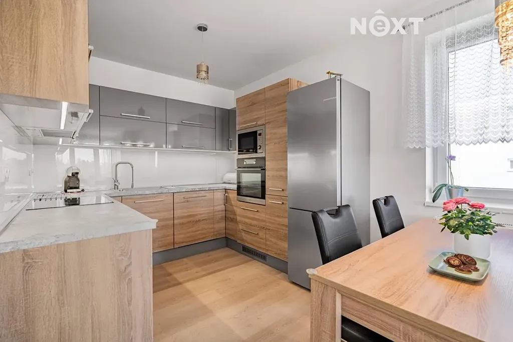 Byt disponuje obývacím pokojem s kuchyňským koutem (34,8 m²), samostatným pokojem (12,4 m²), komorou (1,3m²), chodbou (9,2 m²), koupelnou s vanou (4,8m²) a oddělenou toaletou (1,4m²). Kuchyňská linka je vybavena spotřebiči značky Mora. V předsíni se nachází prostorná vestavěná skříň, která nabízí dostatek úložného prostoru.