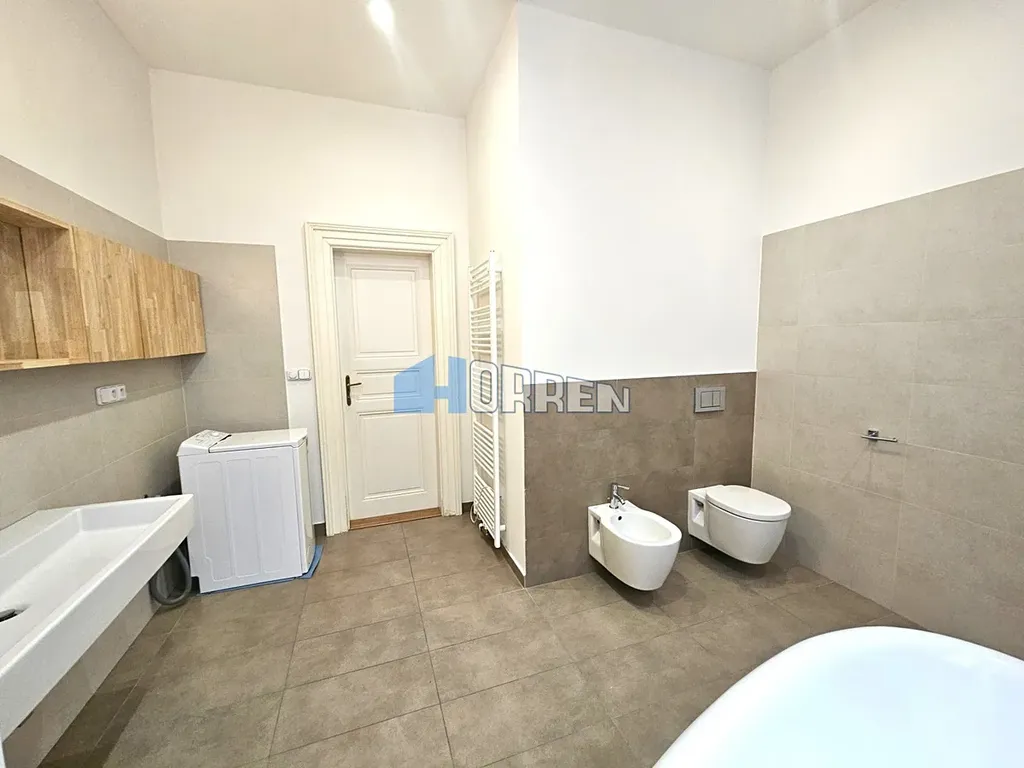 Nabízíme k dlouhodobému pronájmu světlý byt 3+kk umístěný ve 4.patře cihlového domu v ulici Jungmannova, sousedícím s divadlem Kalich. Dům z roku 1894 má renovované historické společné vnitřní prostory a prvky a nově přistavěný skleněný výtah v dvorním traktu. Byt je po rekonstrukci v roce 2014, vlysové dubové parkety pokrývají většinu jednotky a moderní dlažba doplňuje prostornou koupelnu a samostatnou toaletu. Koupelně dominuje samostatně prostorově umístěná vana, dále je zde praktický sprchový kout, toaleta, bidet a pračka jsou samozřejmostí. Velký obývací pokoj s orientací k jihu zaručuje dostatek slunce po velkou část dne. V pokoji je umístěna kuchyňská linka ve tvaru U, která je plně vybavena vestavěnými spotřebiči Bosch (myčka, trouba ,kombi lednice apod.) a praktickou skříní na potraviny. Vedle obývacího pokoje je jedna ložnice a na opačném konci bytu je druhá ložnice s vestavěnou velkou šatnou. Vysoké stropy jen dále umocňují pocit velikosti a volnosti. Vytápění zajištuje kombi plynový kotel. K bytu přísluší sklep v suterénu domu. Zastávky tramvaje a metra (A,B) jsou max. do 5 min. chůze, metro "C" o kousek dále. Vzhledem ke svému umístění jsou téměř na dosah všechny vymoženosti centra. Majitel nechce spolubydlení. Prohlídky po domluvě