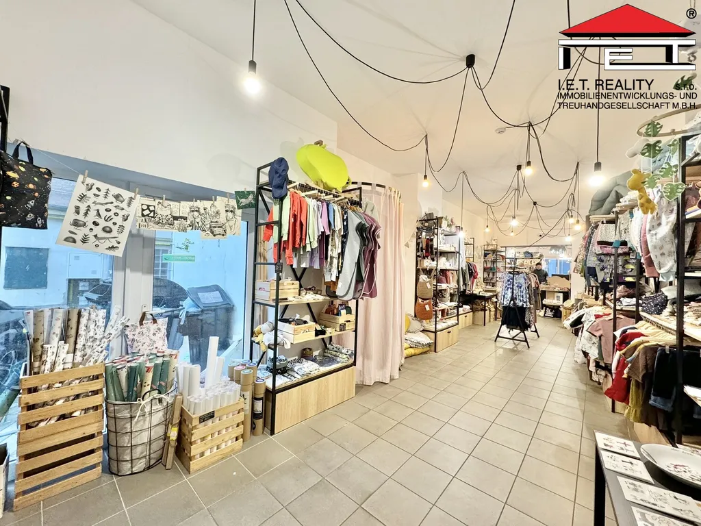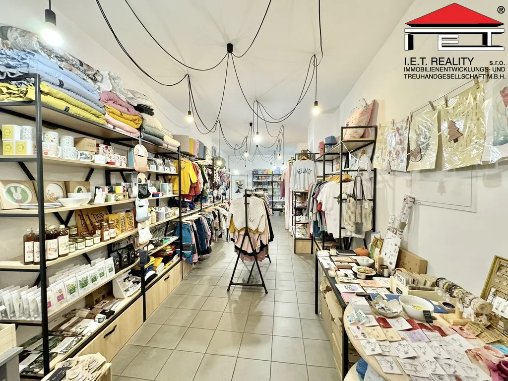 Přední část disponuje velkou výlohou, přímým vstupem z ulice a prostornou reklamní plochou. Prodejní plocha je v praktickém tvaru písmene "L", dále je prostor vybaven vlastním zázemím s WC a druhým vstupem z vnitrobloku.