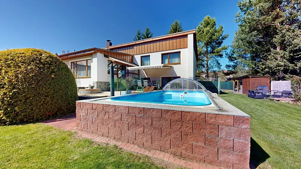 K parkování slouží prostorná garáž (36 m²), která pohodlně pojme 2 auta, další 2 parkovací místa jsou k dispozici přímo před garáží.