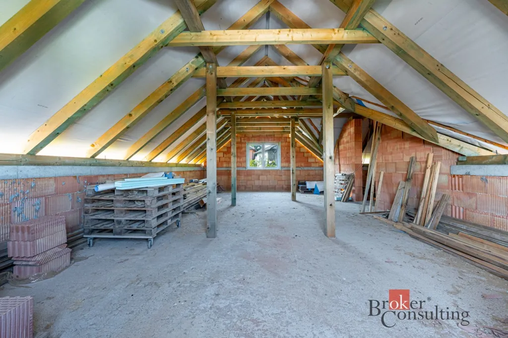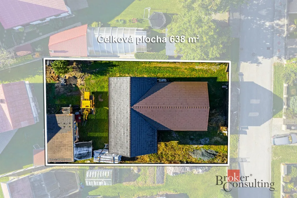 Dům je rozestavěný – hotová je hrubá stavba, krov, střecha a osazená plastová okna včetně vstupních dveří. Použity byly cihly HELUZ a kvalitní stavební materiály. Vnitřní příčky jsou provedené částečně a dokončení interiéru už bude na budoucím majiteli.