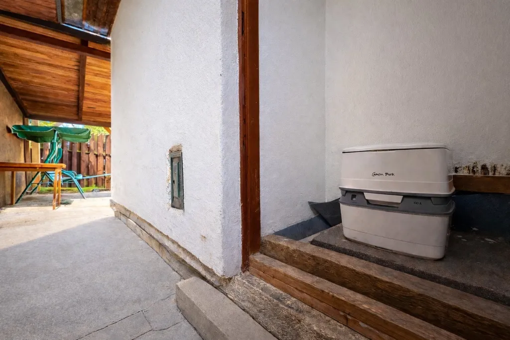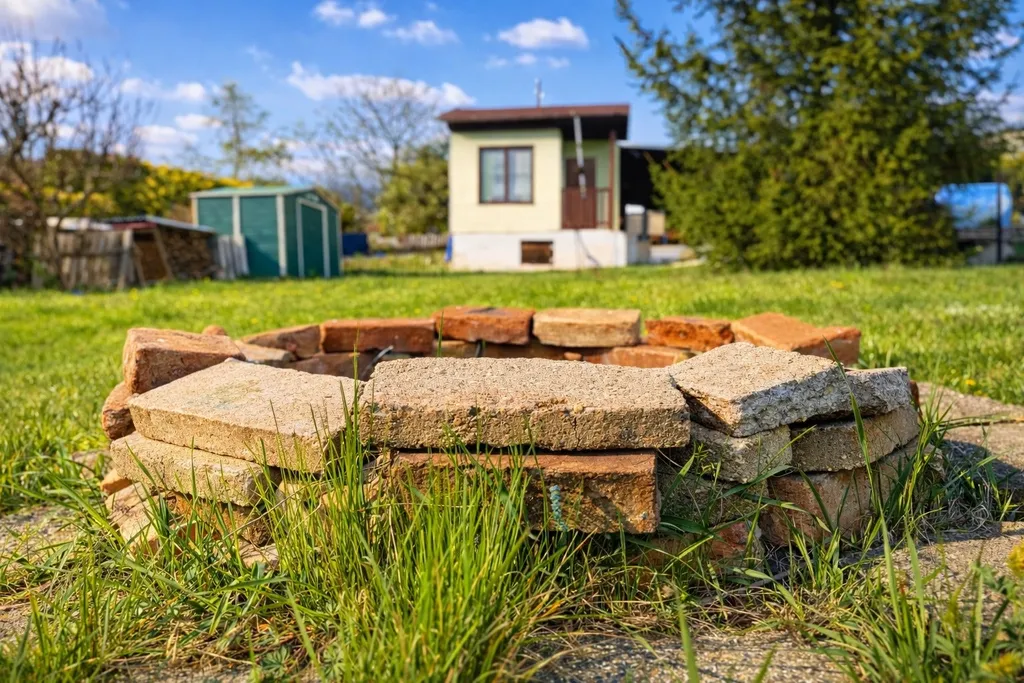 Pozemek je celý oplocený, nachází se na slunném svahu a během dne je zde opravdu dostatek slunce. Vedle chatky najdete zastřešené posezení, z druhé strany pak WC (chemické). K dispozici je také ohniště, plechová kůlna na nářadí a kompost.