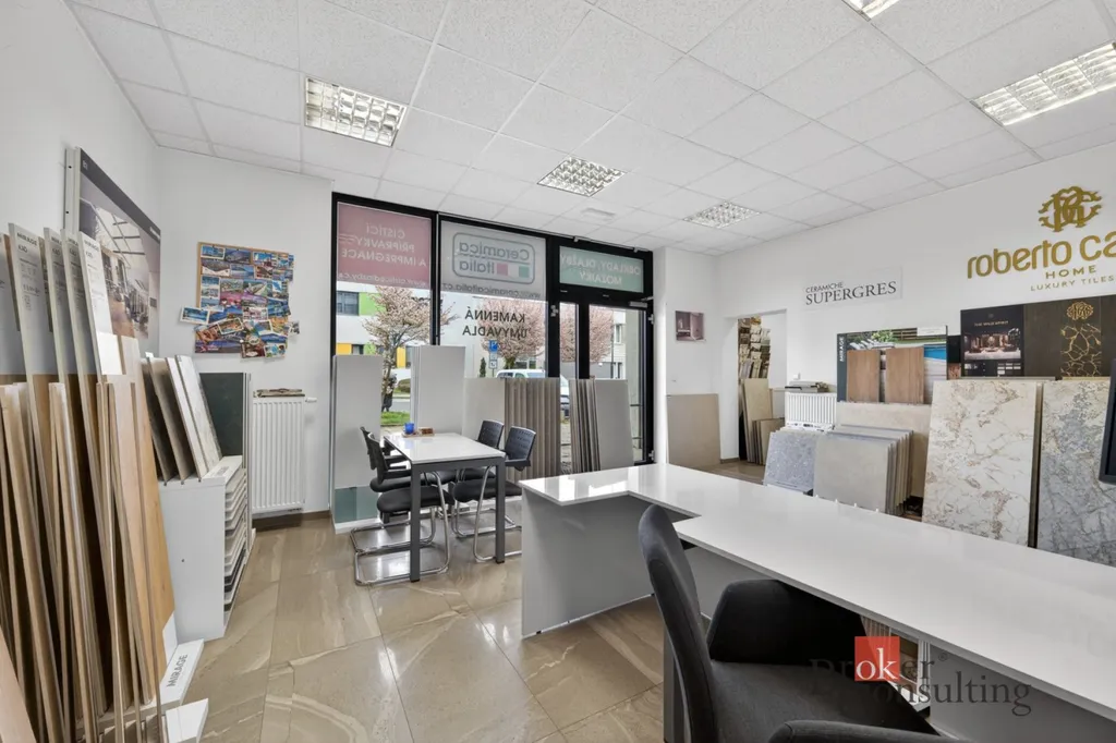 Nabízíme k prodeji reprezentativní komerční prostor o celkové výměře 66 m², který je v současnosti využíván jako showroom luxusních dlažeb. Prostor vyniká nejen svým moderním vzhledem, ale především vysokou variabilitou využití, díky které se snadno přizpůsobí různým podnikatelským záměrům.
