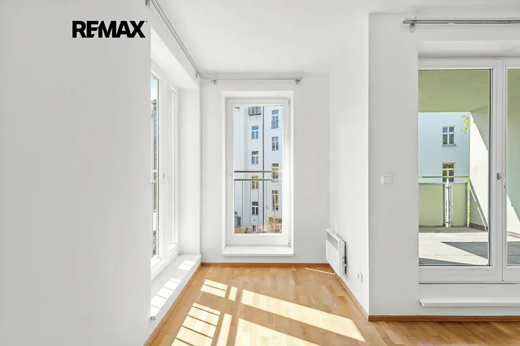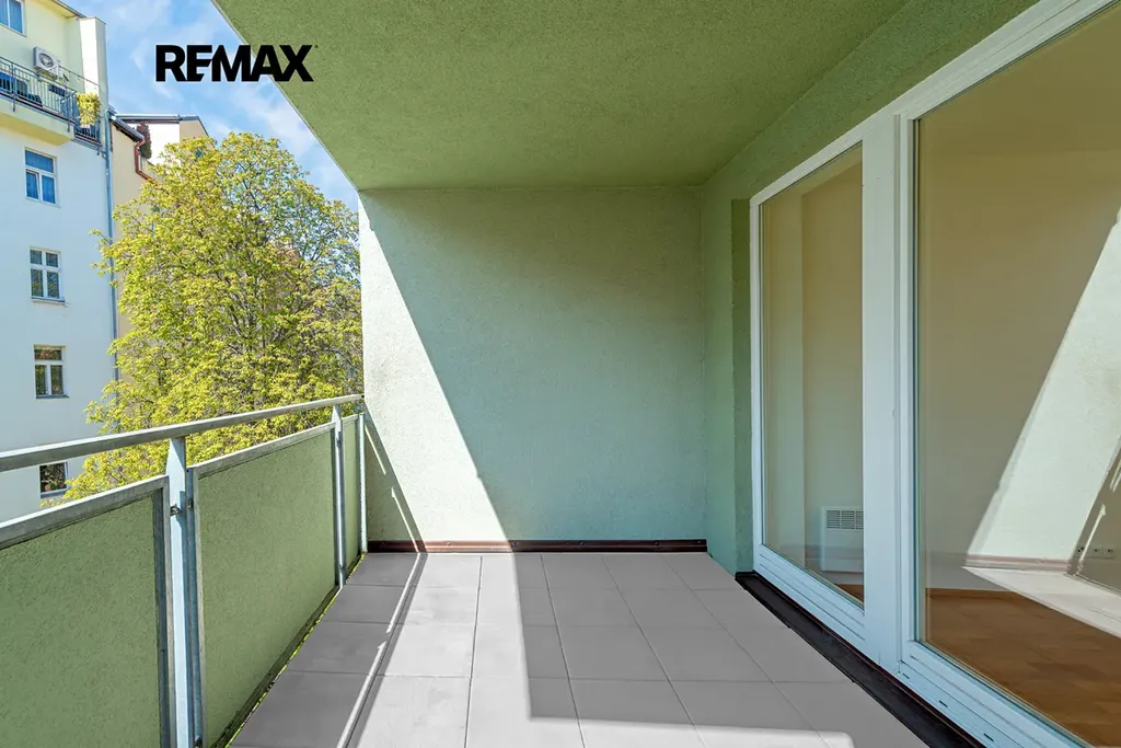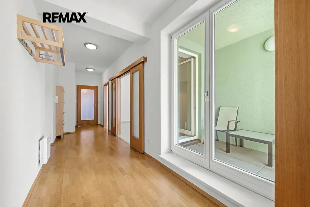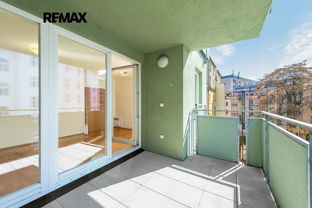 Oba balkony jsou orientovány do klidného vnitrobloku, což zajišťuje maximální soukromí, ticho a příjemnou atmosféru pro každodenní relax.