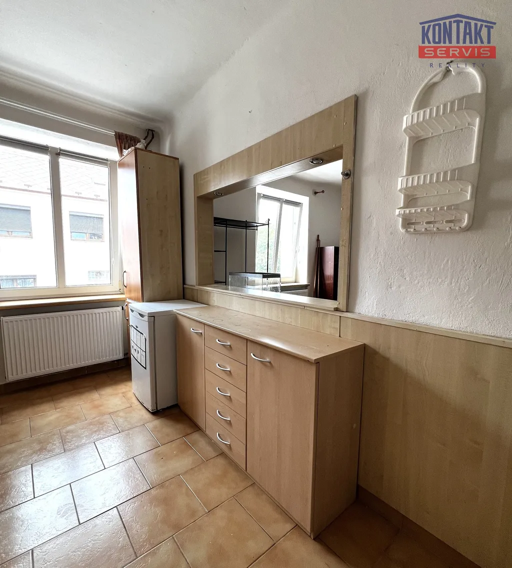 Kuchyň je vybavena moderní linkou, el.troubou se sklokeramickou deskou, dřezem s vodovodní baterii a chladničkou. Ostatní vybavení není předmětem nájmu.