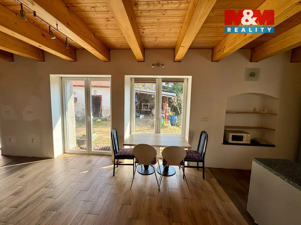 Dispozice 3+kk nabízí komfortní bydlení vhodné pro pár i rodinu. Nemovitost je v dobrém stavu, je částečně vybavena a připravena k nastěhování. Kuchyň je součástí vybavení včetně spotřebičů. Součástí pozemku je také prostor pro zahradu, posezení nebo venkovní relaxaci.