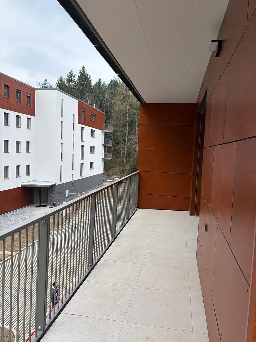 Pronájem slunného bytu 2+kk o celkové výměře 88 m2 včetně prostorného balkónu (18m2, zásuvka elektro a vývod na vodu), samostatné WC, koupena s vanou, venkovní bezpečnostní žaluzie, podlahové vytápění, prostorná sklepní kóje 6m2. Kuchyňská linka na míru s vestavěnými spotřebiči včetně myčky nádobí a lednice (montáž 4/2026).