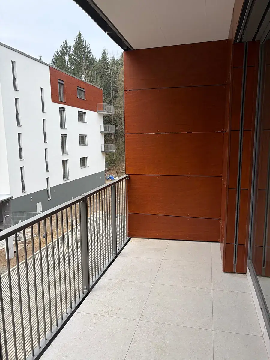 Pronájem slunného bytu 1+kk o celkové výměře 41 m2 včetně prostorného balkónu (6m2, zásuvka elektro a vývod na vodu), samostatné WC, koupena s vanou, venkovní bezpečnostní žaluzie, podlahové vytápění, prostorná sklepní kóje 3m2. Kuchyňská linka na míru s vestavěnými spotřebiči včetně myčky nádobí (montáž 4/2026). Výhradní venkovní parkovací stání.
