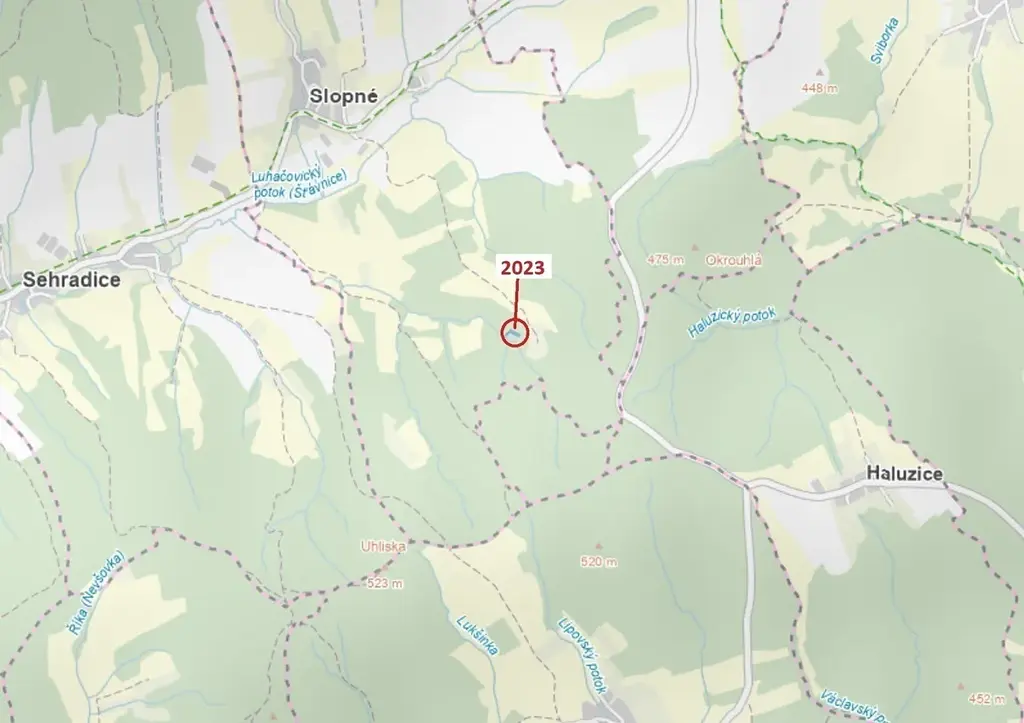 Ostatní plocha o výměře 1294 m2, parcelní číslo 2023, podíl 1/1, katastrální území Slopné, obec Slopné, obec s rozšířenou působností Luhačovice, okres Zlín, Zlínský kraj.