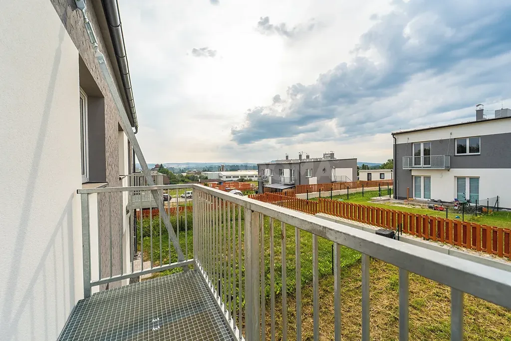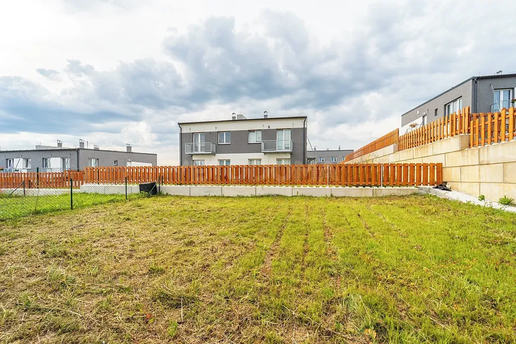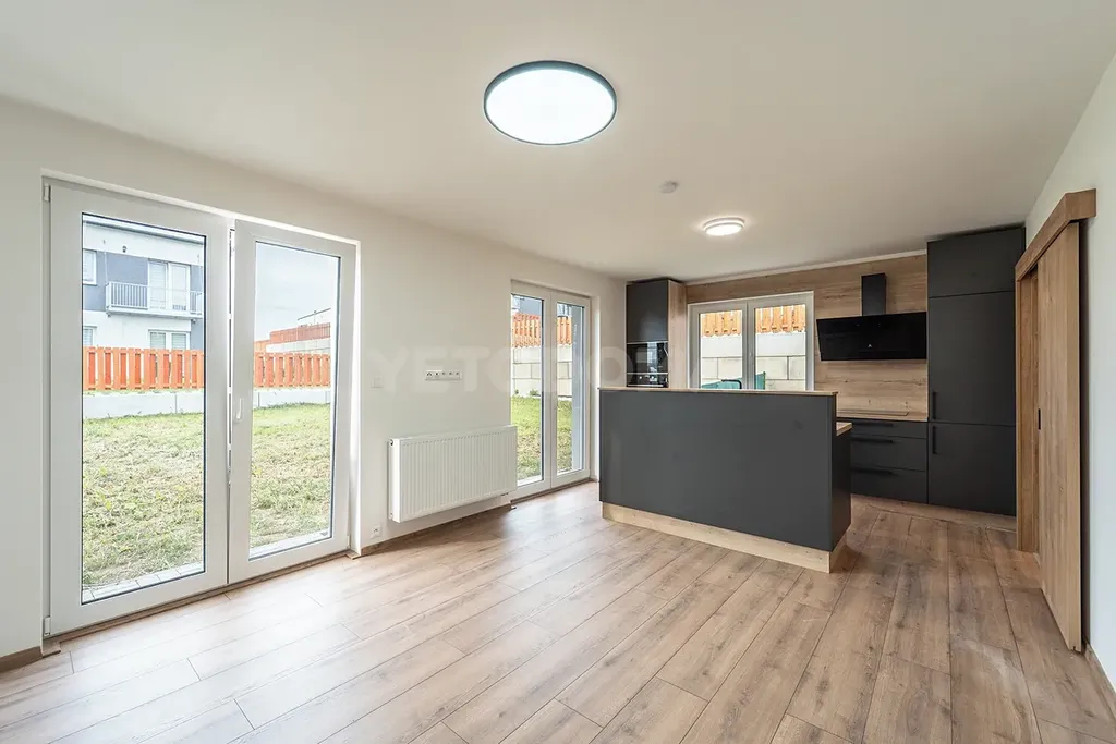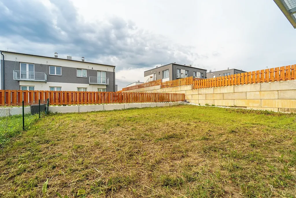 Dispozice bytu je 3+kk s výměrou přibližně 67 m² a vlastní zahradou o výměře 155 m² a balkonem.