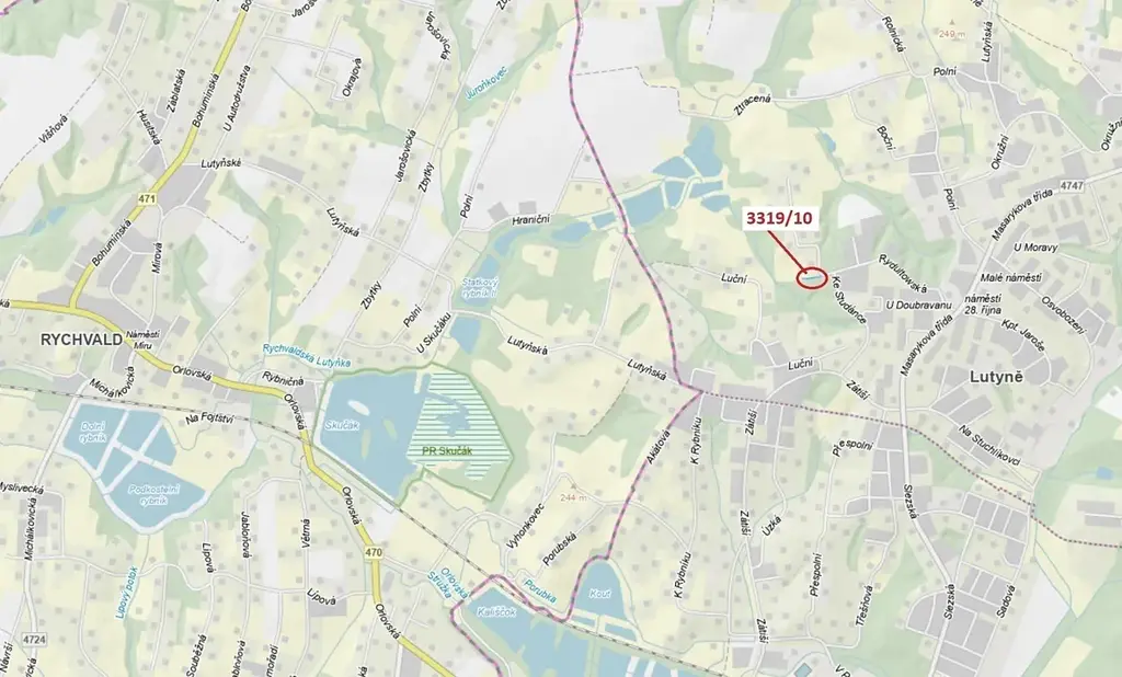 Ostatní plocha o výměře 147 m2, parcelní číslo 3319/10, podíl 1/1, katastrální území Horní Lutyně, obec Orlová, obec s rozšířenou působností Orlová, okres Karviná, Moravskoslezský kraj.