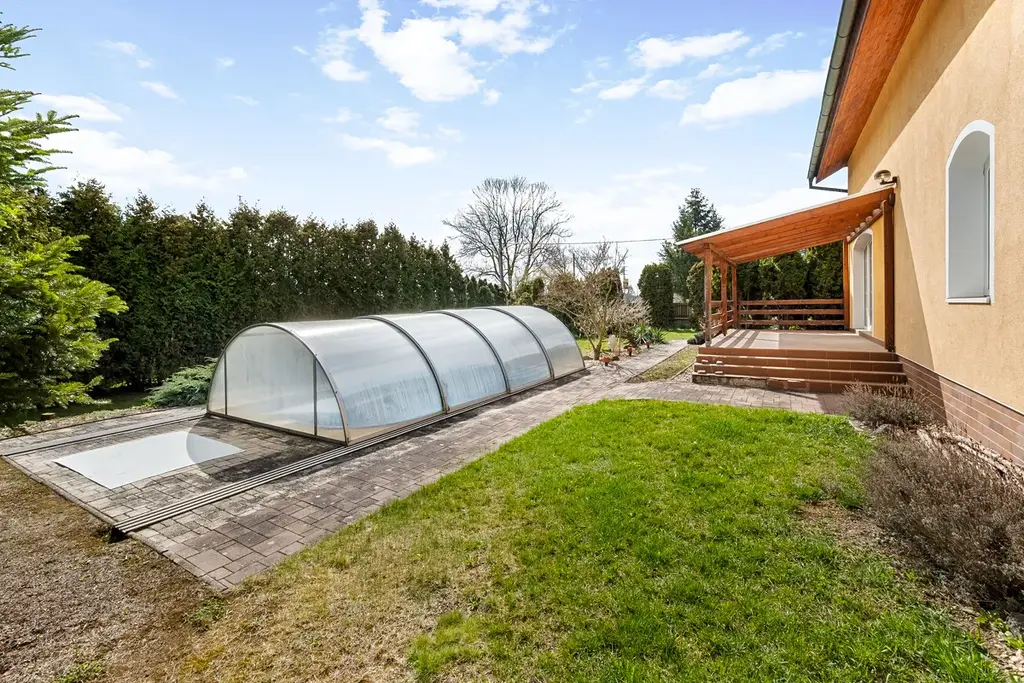 Nabízíme k prodeji prostorný rodinný dům o dispozici 8+2/G/T/B o celkové ploše 371m² s okrasnou zahradou s bazénem, na pozemku o celkové výměře 1194m², k nemovitosti náleží nad rámec oplocení pozemek přiléhající k obecní komunikaci o výměře 80m².