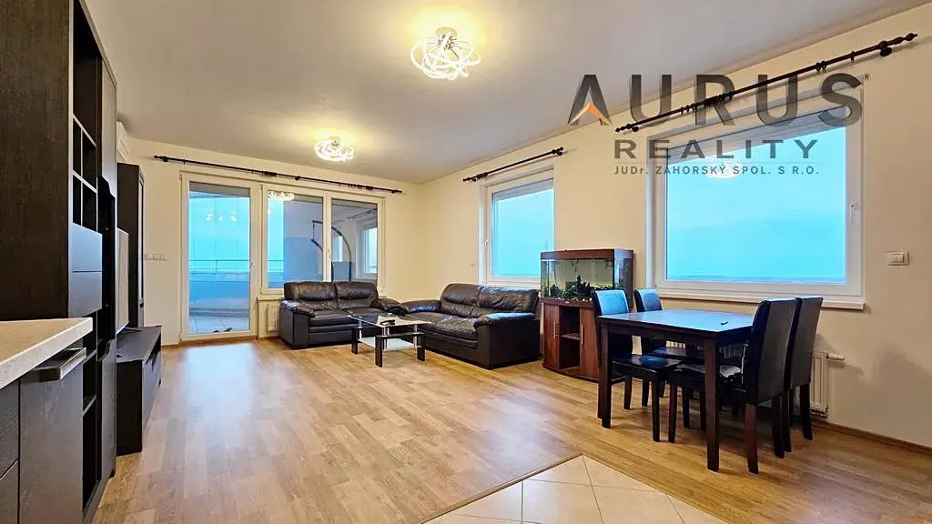 Bytů podobné dispozice je na trhu dost. Tenhle ale hraje v jiné lize. Poslední patro znamená jediné žádní sousedé nad hlavou a nádherný, ničím nerušený výhled do daleka. K tomu přidejte polohu na okraji zástavby a orientaci bytu, která vám na dvou terasách, každé o rozloze 9 m², zajistí vzácnou věc: skutečné soukromí. Výhled do otevřeného prostoru místo do cizích oken. Byt disponuje velikým obývacím pokojem s kuchyňským koutem a vstupem na terasu, ložnicí, také s vlastní terasou a komorou. K úplnému komfortu patří klimatizace. Součástí pronájmu je také sklep pro uskladnění sezónních či nepotřebných věcí.