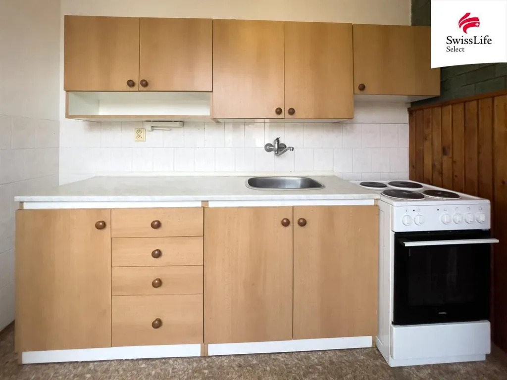 Menší dřevěná kuchyňská linka s úložnou skříní, dále skříň na chodbě. Ve dvou obytných místnostech jsou parkety. Okna plastová. Jinak se byt pronajímá nevybavený, tudíž si ho můžete přizpůsobit Vašemu vkusu a potřebám.