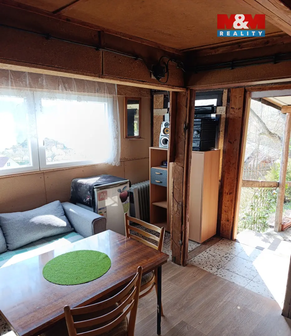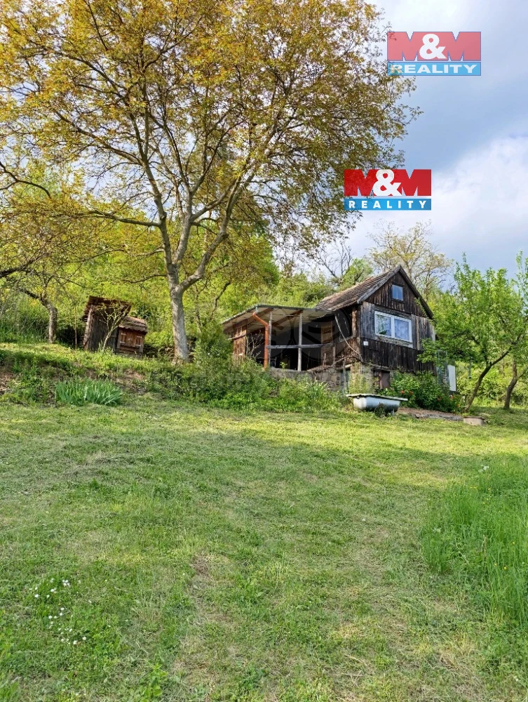 Na zahradě rostou ovocné stromy, je zde dostatek místa na pěstování i posezení. Parkování je možné přímo na pozemku. Chata je podsklepená.