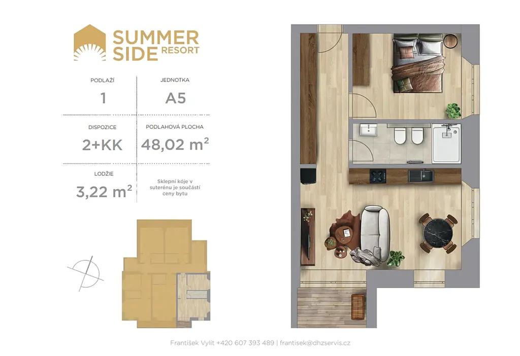 V klidné části Rokytnice nad Jizerou u hranice lesa nabízíme nový apartmán 2+kk o velikosti 42,75 m² s lodžií 3,12 m² v projektu Summer Side Resort. Jednotka je orientována na jih, díky čemuž je po celý den příjemně prosvětlená.