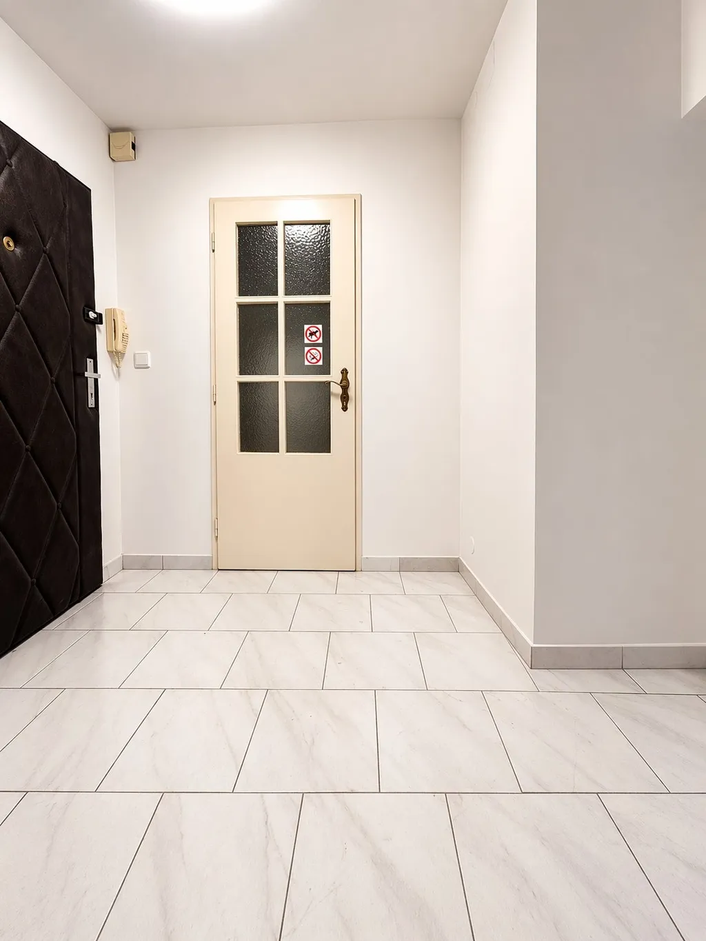 Dispozice bytu tvoří předsíň, průchozí kuchyně, koupelna, samostatné WC, komora a dva samostatné pokoje, oba s vestavěnými patry na spaní, přičemž z jednoho z nich je vstup na balkon. Díky uspořádání je byt vhodný i pro spolubydlení.
