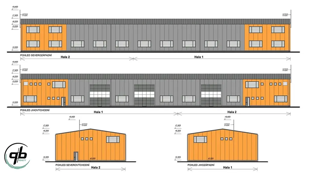 Nabízíme k prodeji pozemek o výměře cca 3800 m2, v průmyslové zóně ve Vratimově, na ul. Mourova s vydáným pravomocným stavebním povolením k výstavbě haly o zastavěné ploše 942,31 m2. Hala je rozdělená na dva samostatné bloky, každý s dvoupodlažní administrativní a otevřenou jednopodlažní skladovou částí s jeřábovou kočkou. Je navržená jako montovaná stavba, o celkových rozměrech 60,56 m x 15,56 m, výšky 7,4 m. Je tvořená ocelovým skeletem opláštěným stěnovými PUR panely tl. 120 mm. Nosná střešní konstrukce je navržena ocelová příhradová, sedlová se sklonem 15%. Střešní plášť je navržen z PUR panelů tl. 120 mm.