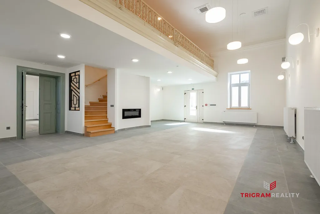 Prostorný sál s krbem a galerií v patře s výhledem do sálu (variabilní využití)