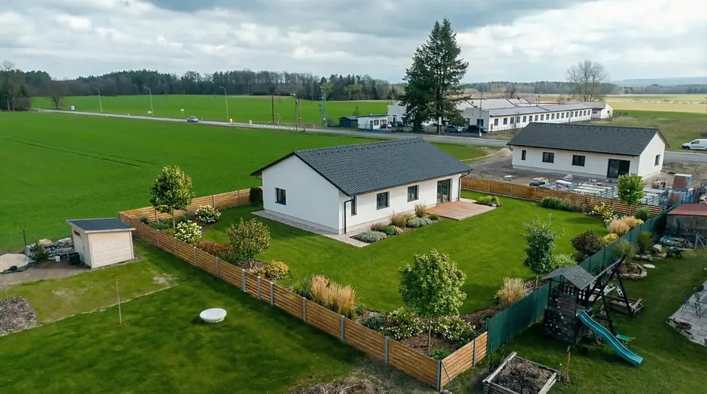K prodeji je novostavba jednopodlažního rodinného domu (č. 1) ve and #34;městě mezi lesy and #34; - v Horním Jelení. Dům je situován na rovinatém pozemku o výměře 864 m2, v okrajové nově vznikající rezidenční čtvrti, severně od centrální části obce. Rodinný dům je půdorysného tvaru obdélníku s rozměry 14,66 m x 9,11 m. Výška objektu od úrovně 1. NP k hřebenu střechy je 5,5 m. Dům nabízí zastavěnou plochu 133,6 m2, užitnou plochu 104,6 m2 a je dispozičně řešený jako 4+kk. Skrze zádveří je vstup do chodby a následně do obývacího pokoje s kuchyní a jídelnou. Ze vstupní chodby je dále přístupná ložnice s šatnou, pokoj, pracovna, koupelna, technická místnost a WC. Z kuchyně je vstup do spíže. Pozemek bude oplocen. Dům bude předán zkolaudovaný, jeho dokončení je plánováno na červenec 2026. Okna a dveře na terasu jsou plastová s izolačním trojsklem. Střešní krytina je z keramických tašek Tondach. V obytných místnostech budou použity lepené vinylové dílce, v místnostech hygienického zázemí a technické místnosti keramická dlažba. Vnitřní dveře budou dřevěné plné s CPL povrchem osazené do dřevěných obložkových zárubní. Koupelna bude osazena sanitární technikou. Součástí domu při předání nebude kuchyňská linka. Dům je napojen na veřejný vodovod, kanalizaci a elektřinu. Vytápění domu zajistí tepelné čerpadlo vzduch-voda s podlahovým vytápěním. Pozemek je příjemně orientován, v zástavbě nízkopodlažních rodinných domů, s lesem za zády a v obci s dobrou úrovní občanské vybavenosti. Z Horního Jelení jsou skvěle dostupné Holice, Vysoké Mýto, Borohrádek a Choceň. Do 30 min. jste v Hradci Králové. Svou polohou uprostřed lesů láká ke sportu i k procházkám k blízkým rybníkům. Okolní lesy nabízí každoroční bohatou úrodu hub a borůvek.