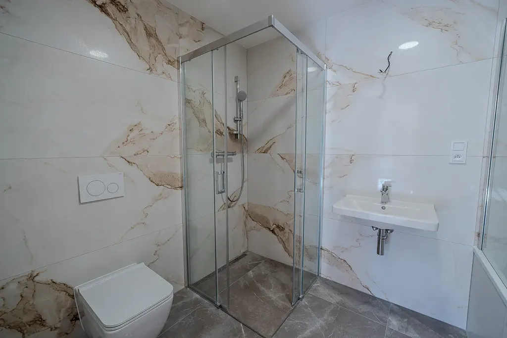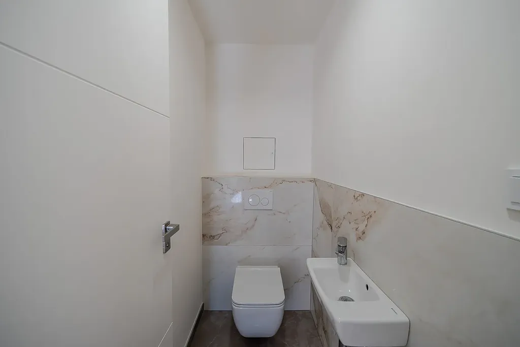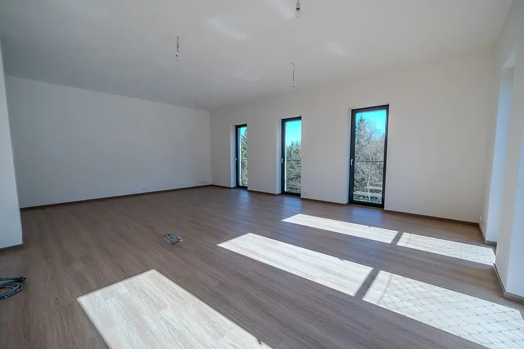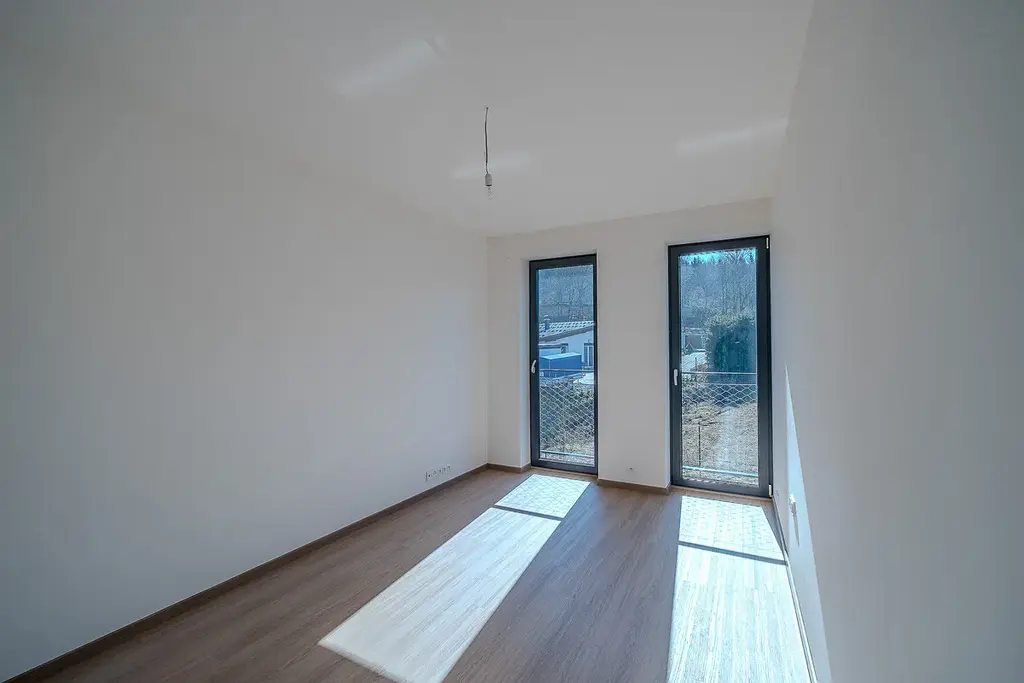 Samozřejmostí je vysoký standard provedení – kvalitní vinylové podlahy s akustickou podložkou, francouzská okna s izolačním trojsklem, moderní koupelny se sanitou Grohe, velkoformátové obklady a příprava na venkovní žaluzie.