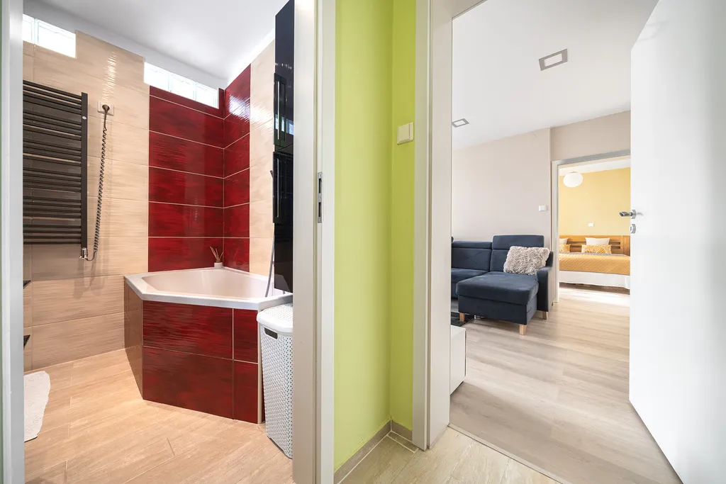 Byt prošel před několika lety celkovou rekonstrukcí (zděné jádro, plastová okna, nové rozvody vody a elektřiny). V rámci rekonstrukce bylo v koupelně umístěno regulovatelné podlahové vytápění a nachází se v ní jak vana, tak i sprchový kout.