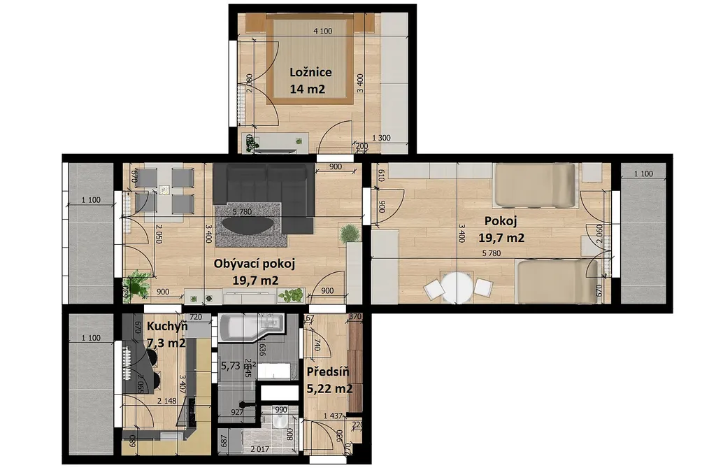 Byt je světlý, dobře dispozičně řešený a připravený k okamžitému nastěhování.