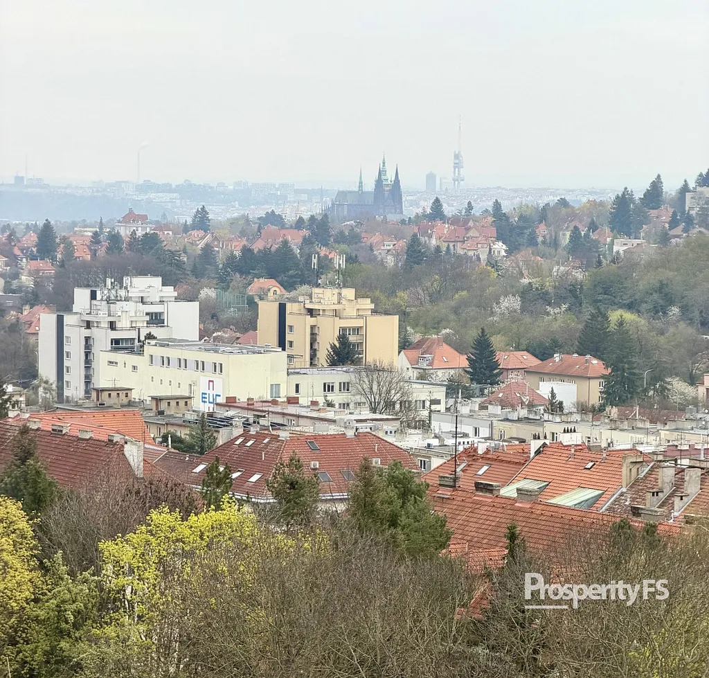 Velkým bonusem je společný balkon na patře, který nabízí krásný výhled na Pražský hrad – ideální místo pro relaxaci, ranní kávu nebo večerní odpočinek.