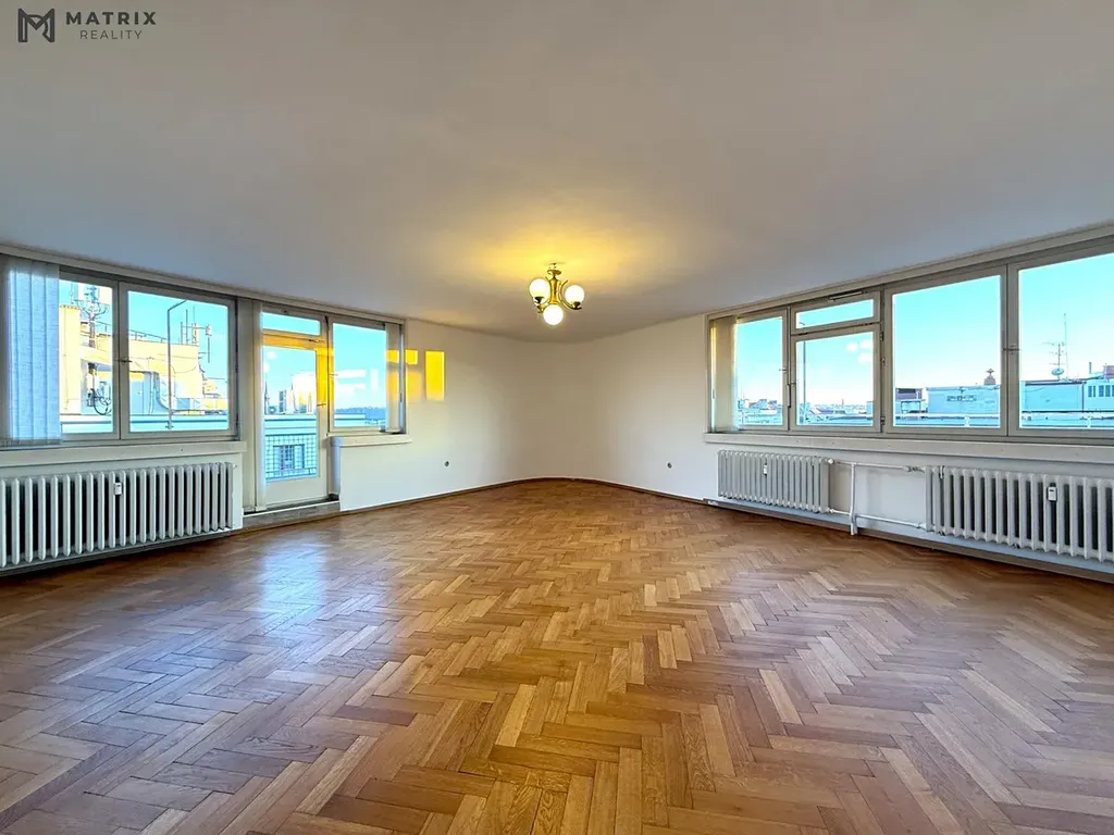Zprostředkujeme Vám pronájem atypického prostorného bytu v klidné lokalitě Prahy 7 , v blízkosti parku Stromovka a Letné, krásný funkcionalistický dům. Byt je dispozičně řešen jako 2+kk s velkou terasou do tvaru L , kolem celého bytu s orientací na východní a jižní stranu. Z terasy i pokojů je nádhezný výhled na celou Prahu. Poslední patro, výtah. Velká vstupní hala s prostornými vest. skříněmi. Koupelna s vanou a prostorem pro pračku. Samostatné WC. Dva pokoje se samostatným vstupem. Menší pokoj je rozdělený velkými skleněnými dveřmi na část pro kuchyň s kuch. linkou, vybavenou el. sporákem a el. varnou deskou a část pro pokoj , kde může být pracovna nebo menší ložnice. V pokoji je velké okno přes celou zeď , orientované na východní stranu. Druhý pokoj je prostorný obývací pokoj s velkými okny podél celého pokoje a se vstupem na panoramatickou terasu s výhledem na celou Prahu. Na podlaze jsou dřevěné parkety. V blízkosti veškerá občanská vybavenost. Byt je vhodný pro pár, ideálně jednu osobu. K nastěhování ihned.