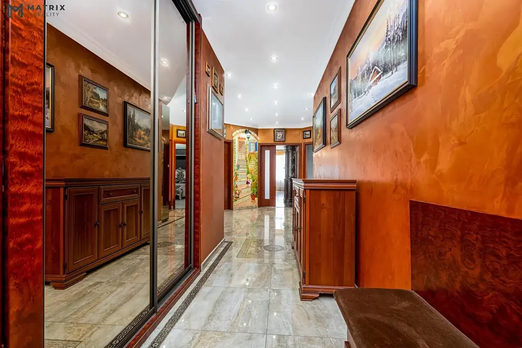 Interiér byl realizován s použitím kvalitních a nadstandardních materiálů. Současné provedení odpovídá stylu své doby, přičemž dispozice i charakter bytu zároveň umožňují poměrně snadnou úpravu do výjimečného moderního bydlení podle vkusu nového majitele.