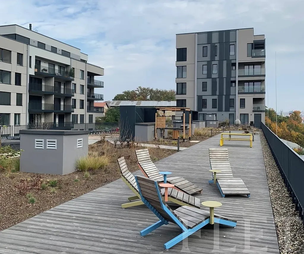 Nabízíme krásný byt v luxusní rezidenci Neugraf v atraktivní lokalitě pražského Smíchova. Tento krásný a elegantní byt disponuje prostornou místností s plně vybavenou moderní kuchyní, koupelnou s toaletou a sprchovým koutem. Byt je vybaven nábytkem včetně pohodlného rozkládacího gauče, stačí si sbalit své osobní věci a můžete bydlet. V rámci bytového komplexu je tu pro vás velká společná střešní terasa s výhledem na Prahu, vnitřní zahrada, wellness, recepce s ostrahou, prádelna, kavárna i zahrada. S úložnými prostory si starosti dělat také nemusíte, k bytu náleží velký sklep.