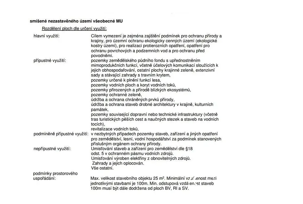 Pozemky jsou dle územního plánu zařazeny do ploch nezastavitelných smíšených (plochy smíšené nezastavěného území všeobecné).