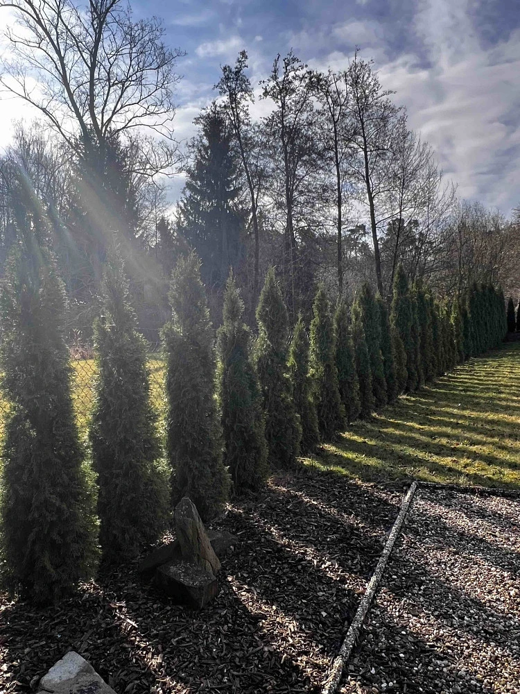 Na krajním pozemku stojí mobilheim o velikosti 2+1 ( kuchyň, pokoj, ložnice, koupelna). Je zde také zahradní domek. Vlastní studna na pozemku, elektřina, septik. Tento pozemek je oplocen pletivem a jsou zde vysazeny túje.