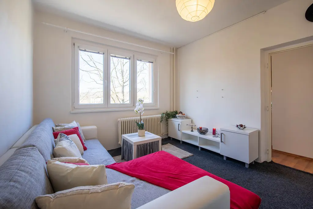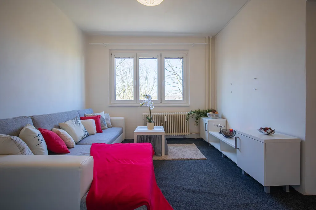 Nabízíme k pronájmu hezký byt 2+1 v klidné a žádané lokalitě města Most. Byt se nachází ve 2. patře panelového domu s výtahem a nabízí se včetně vybavení. Kuchyň disponuje kuchyňskou linkou s kombinovaným sporákem, lednicí, myčkou a dále vyvýšeným stolem s barovými židlemi. Součástí koupelny je vana včetně toalety. V dalších místnostech je několik úložných komod, skříň, postel, gauč a na chodbě oceníte prostornou vestavěnou skříň. K bytu náleží sklepní kóje v suterénu domu.
