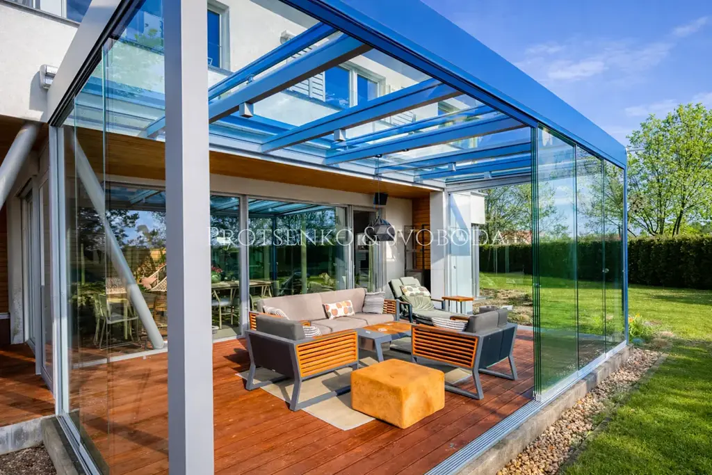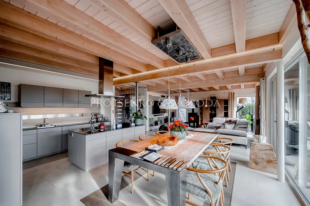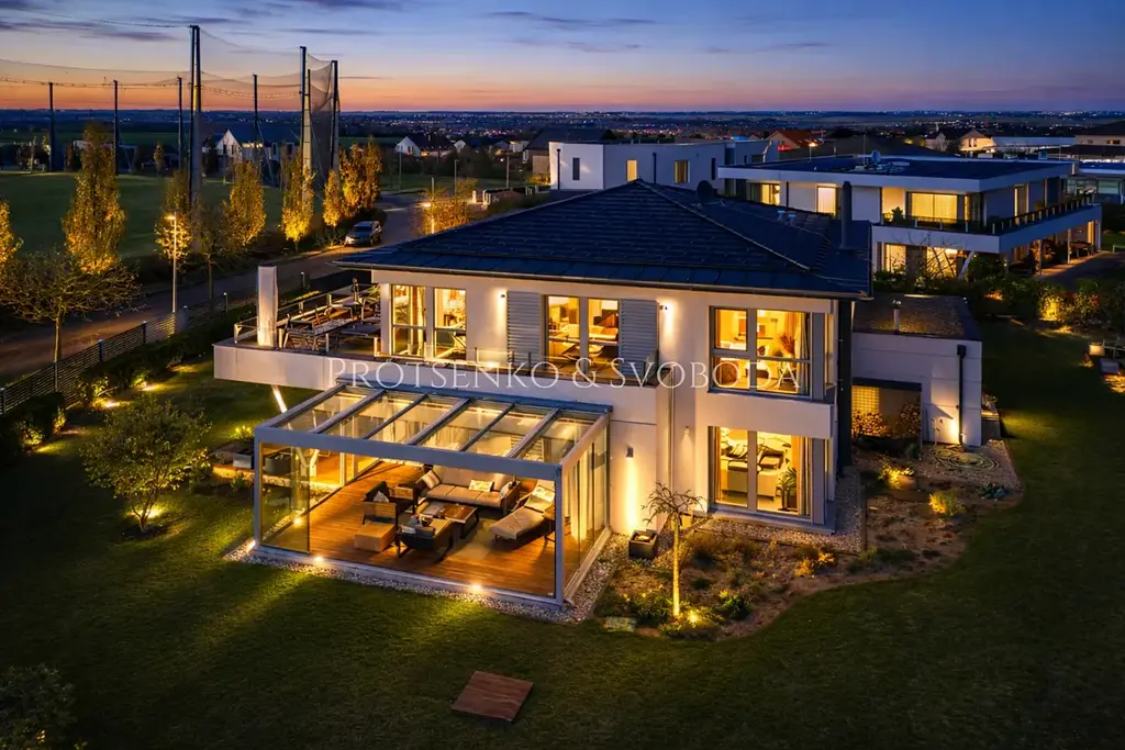 Spol. "Protsenko & Svoboda" nabízí k prodeji moderní dvoupodlažní dům, kde byly použity kvalitní a zcela přírodní materiály, stojí přímo u vyhlášeného golfového resortu kousek od Prahy. Stavba klade důraz na práci se světlem, otevřený prostor a dostatek vzduchu, a proto zde vládne neskutečně příjemná atmosféra.