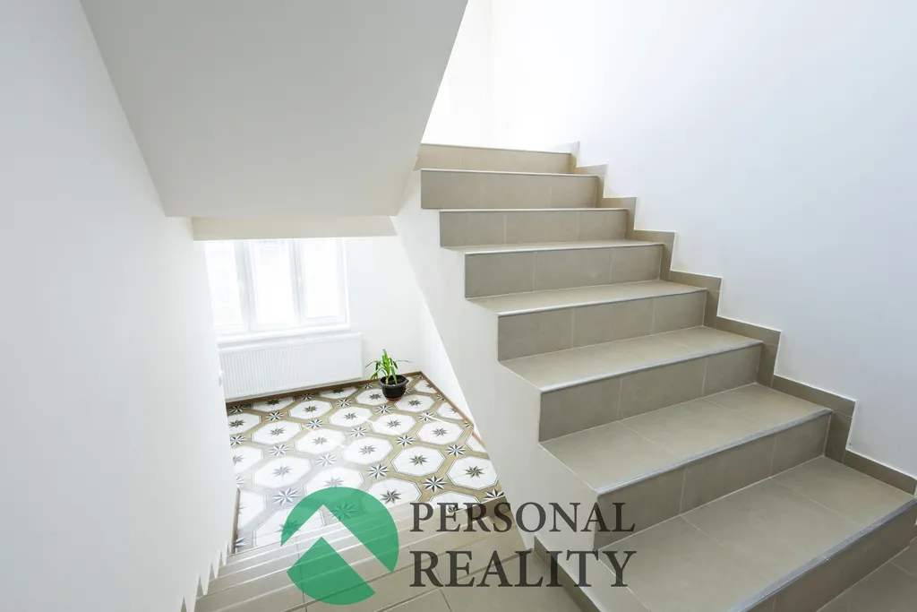 Jednotka v 1. patře má navíc k dispozici obrovskou terasu (cca 45m2), která se táhne podél celého prostoru obývacího pokoje a ložnice a je přístupná francouzskými okny.