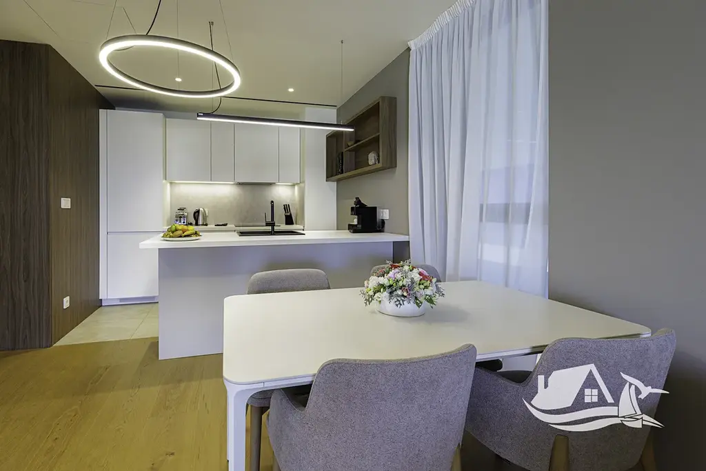 Celková plocha jednotky činí 91,80m², k níž náleží prostorná terasa o velikosti 11,20 m² s úchvatným výhledem na Jaderské moře. Interiér je zařízen moderním a vkusným nábytkem, který podtrhuje kvalitu a styl celého prostoru.