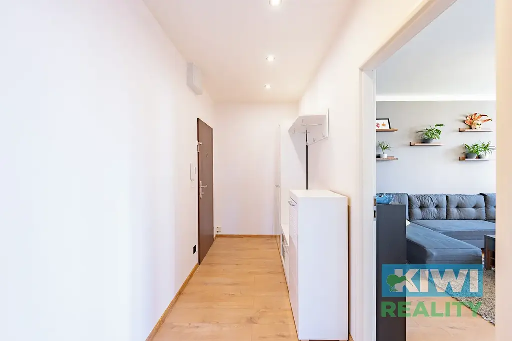 Byt se prodává částečně vybavený – zůstává kompletní vybavení chodby, šatní skříň v ložnici a kuchyňská linka včetně spotřebičů (vestavěná trouba, mikrovlnná trouba, myčka, varná deska a lednice).