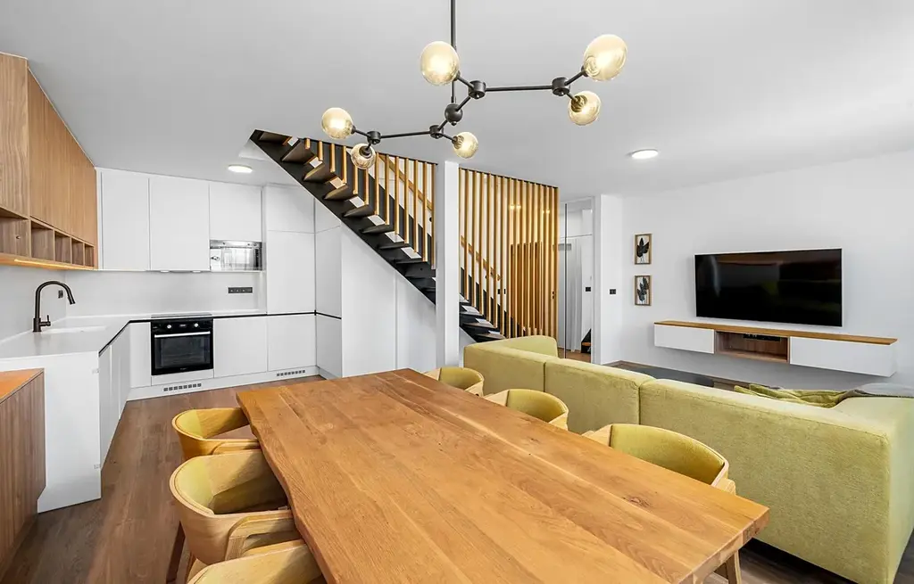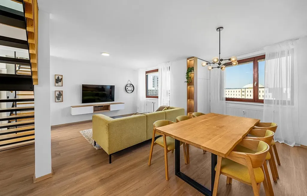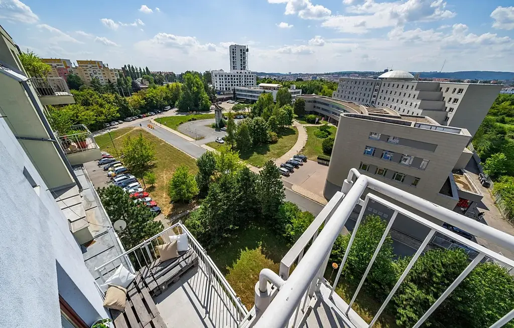 Nabízíme k pronajem exkluzivní mezonetový byt 3+kk, který se nachází na prestižní adrese v Brně, na ulici třída Generála Píky. Tento byt je ideální volbou pro pár či mladou rodinu, která hledá klidné a komfortní bydlení s moderním designem. Do mezonetového bytu v 8. nadzemním podlaží s užitnou plochou 123,5 m² se dostanete jedním ze dvou nových výtahů.V roce 2022 prošel tento byt kompletní rekonstrukcí. Návrh a realizace tohoto moderního a unikátního interiéru zajistila renomovaná brněnská designerská společnost, která si na provedení dala opravdu záležet. Vinylové podlahy, moderní obklady, nábytek na míru z dubového dřeva, vestavěné skříně s dostatkem úložného prostoru a nadčasové prvky Vás rozhodně zaujmou. V moderně vybavené kuchyni je kamenná pracovní deska se zapuštěným dřezem a vestavěnými spotřebiči.Dominantou bytu je prostor pro živou zeď vysokou 3 metry a masivní dubové schodiště s proskleným zábradlím, které dodávají interiéru přirozenost a nadčasovost. Obývací pokoj je propojen s kuchyní a jídelnou, což vytváří prostorný a světlý centrální prostor o výměře 42 m².Byt je orientován na západ a zaručuje nádherný výhled na celé Brno. Dva balkony, z nichž jeden je přístupný z obývacího pokoje a druhý z ložnice, jsou díky svému umístění v posledním patře maximálně soukromé. Můžete si zde užívat grilování či relax s rodinou a přáteli a nikdo Vás nebude rušit.Byt disponuje dvěma toaletami, v koupelně ve druhém patře najdete vanu, sprchový kout a WC. Ve druhém patře tohoto mezonetového bytu se nachází také ložnice, pracovna a šatna, ze které je přístup na půdu o výměře 12 m², tento prostor je ideální pro vybudování nikým nerušeného místa, například pracovny a zvětší tak mezonet na 4+kk. Příprava na klimatizační jednotky Vám zajistí optimální teplotu v každém ročním období. Vytápění a ohřev teplé vody jsou řešeny centrálně, dálkově (teplárny). K bytu náleží dvě prostorné sdílené kolárny v 1. a 8. nadzemním podlaží, které poskytují dostatek místa pro úschovu kol a dalších potřeb.Za pouhých 10 minut se ocitnete v centru města, přesto si užíváte klidné prostředí s kompletní nabídkou služeb, které máte na dosah ruky. V blízkosti tohoto bytu se nachází obchody, moderní kavárny a restaurace, školy, školky a univerzity. Pro milovníky sportu je hned za domem nový, velice oblíbený fitness a wellness club ZONE4YOU s rozlohou 2 500 m². ZONE4YOU poskytuje širokou nabídku skupinových lekcí, 54 posilovacích a kardio strojů, squashové kurty a relax v bazénu, sauně či soláriu. V blízkosti tohoto bytu se nachází nově zrekonstruované plavecké bazény Lužánky, oblíbený park Lužánky a Arboretum, kde si můžete užívat klidné procházky. Pro ty, kteří rádi navštěvují kulturní akce, je nedaleko známé eventové sídlo Boby centrum, kde se každoročně pořádá nespočet zajímavých společenských akcí.