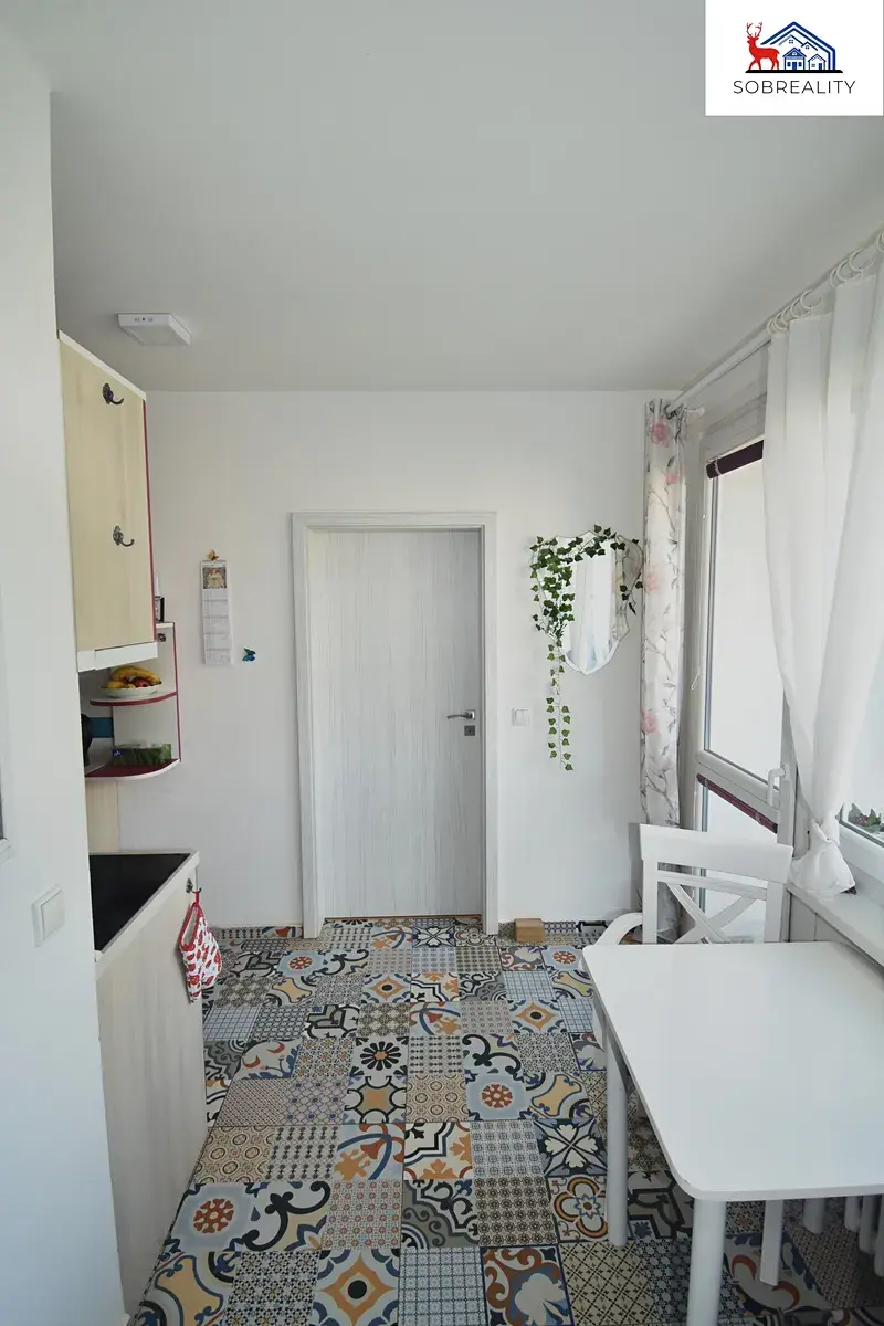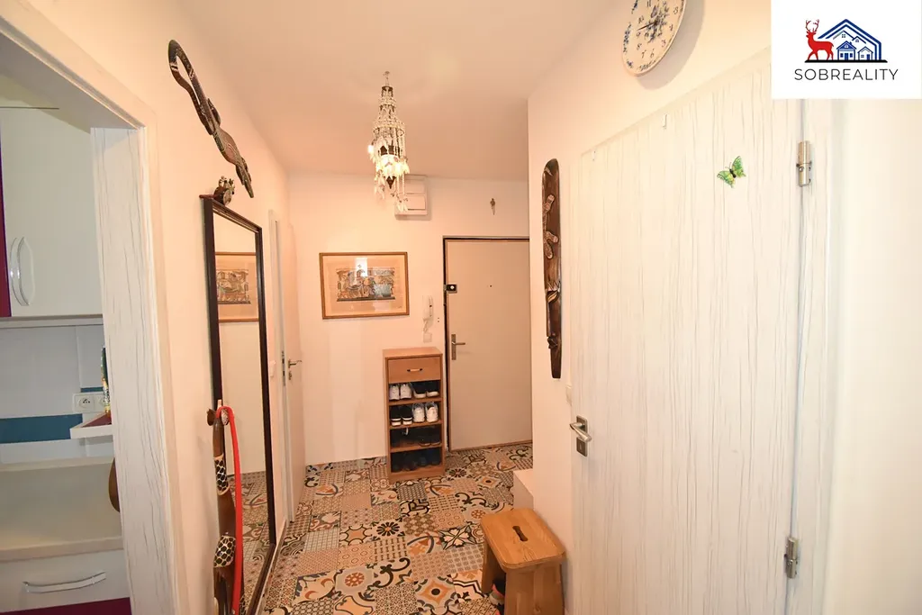 Byt se nachází ve 3. nadzemním podlaží (2. patro) a před 8 lety prošel kompletní rekonstrukci – elektroinstalace, vodoinstalace, odpady, štukové omítky, dveře, podlahy – dlažba, plovoucí podlaha a samozřejmě také zděné jádro.
