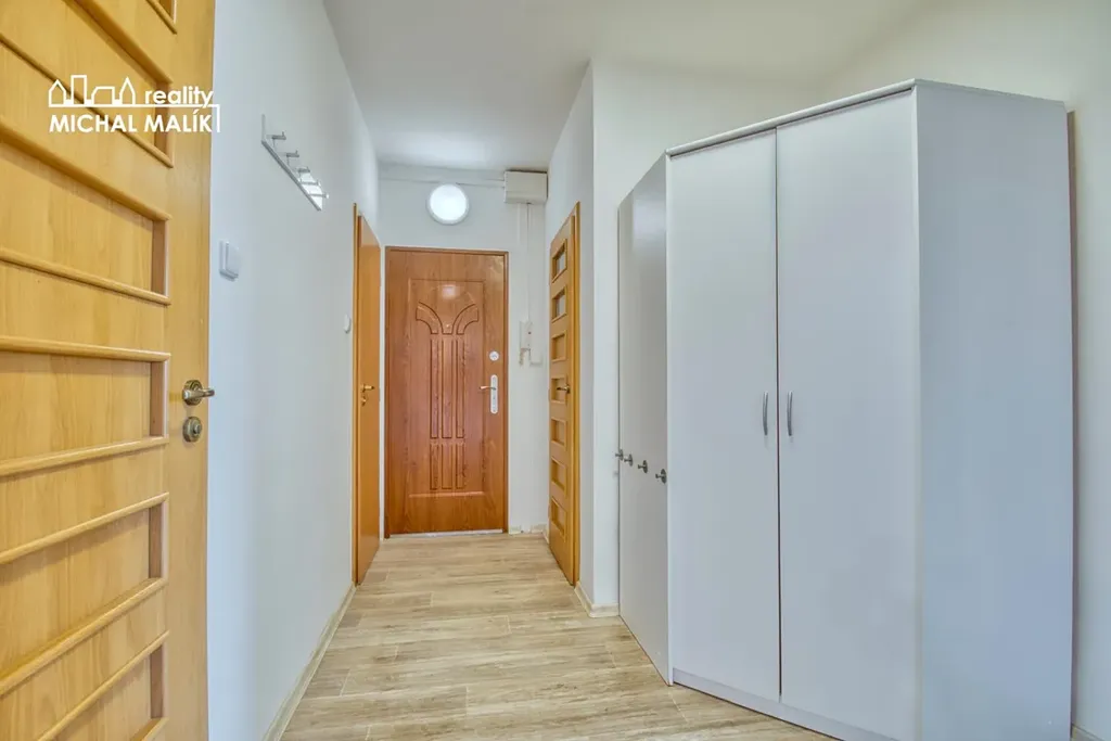 Dispozičně byt nabízí prostornou vstupní chodbu s vestavěnou skříní, ze které je samostatný vstup do kuchyně, obývacího pokoje, ložnice, samostatného WC a zděné komory/šatny s policovým systémem. Do koupelny se vstupuje z kuchyně. Kuchyně je vybavena kuchyňskou linkou se spotřebiči a dále navazuje druhým vstupem na obývací pokoj. Koupelna je vybavena sprchovým koutem. V ložnici je k dispozici další úložný prostor ve vestavěných skříních (viz fotografie). Celkové řešení bytu je praktické a velmi dobře využitelné.