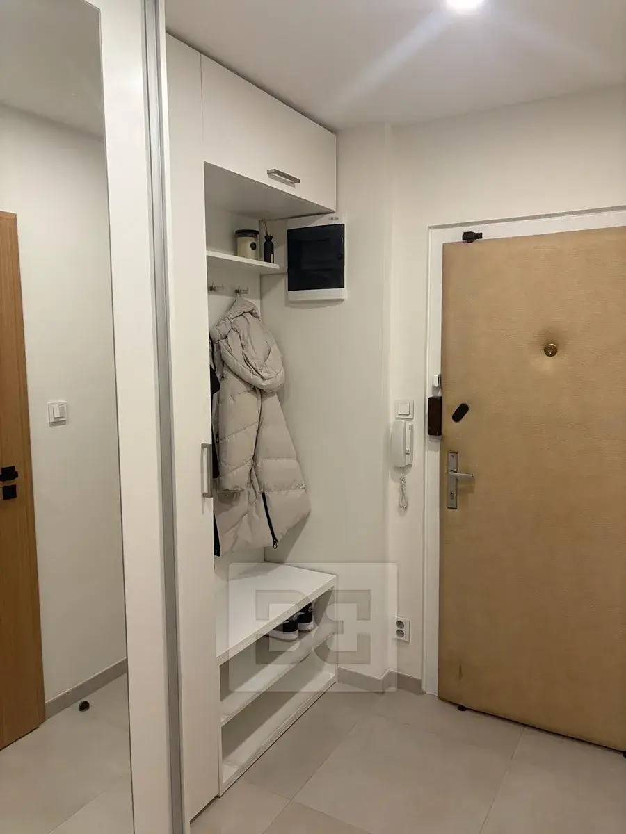 Velkou výhodou jsou venkovní elektrické rolety. Byt je dále vybaven bezpečnostními vstupními dveřmi.